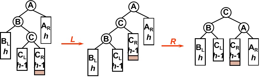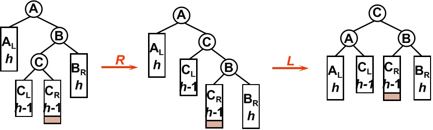 1.2.3) \(b=-1\):设\(z=y.right\),显然此时\(z\)非空。左旋转\(y\)然后右旋转\(x\)(上图第4张)。此时新树根为\(z\)且高度降低1;