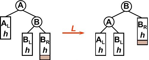 1) \(rotate(n)\):额外要求执行前后原\(n\)子树(执行后子树根已不再是\(n\))所有节点的\(bfactor\)正确。实现该要求的逻辑本身不算很复杂,但其步骤描述起来较繁琐,故这里不展开,具体可根据上述\(rotate\)的图片进行分析,也可参考后文的具体程序;