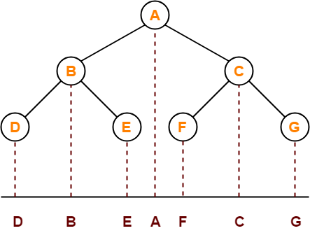 4) 中序遍历(In-Order):若树非空,先递归的中序遍历左子树,再访问树根,最后递归的中序遍历右子树;
