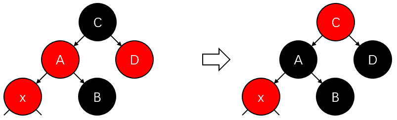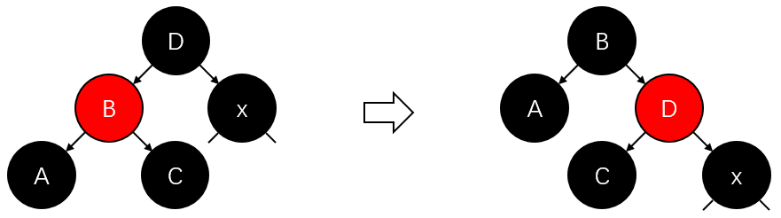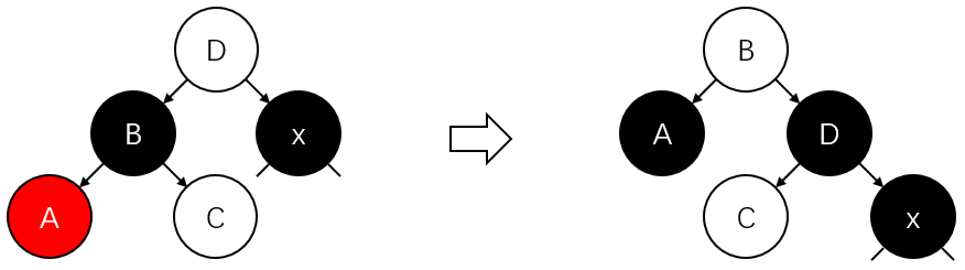 2.1) \(x\)无父亲或有黑父亲:若\(x\)无父亲则置黑\(x\)。退出迭代;